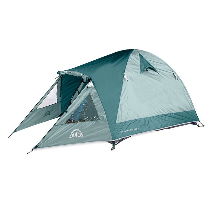 Carpa con extensión frontal del cubretecho por medio de una varilla adicional; proporciona mayor espacio en la entrada. Con dos respiradores laterales para mejor circulación del aire.